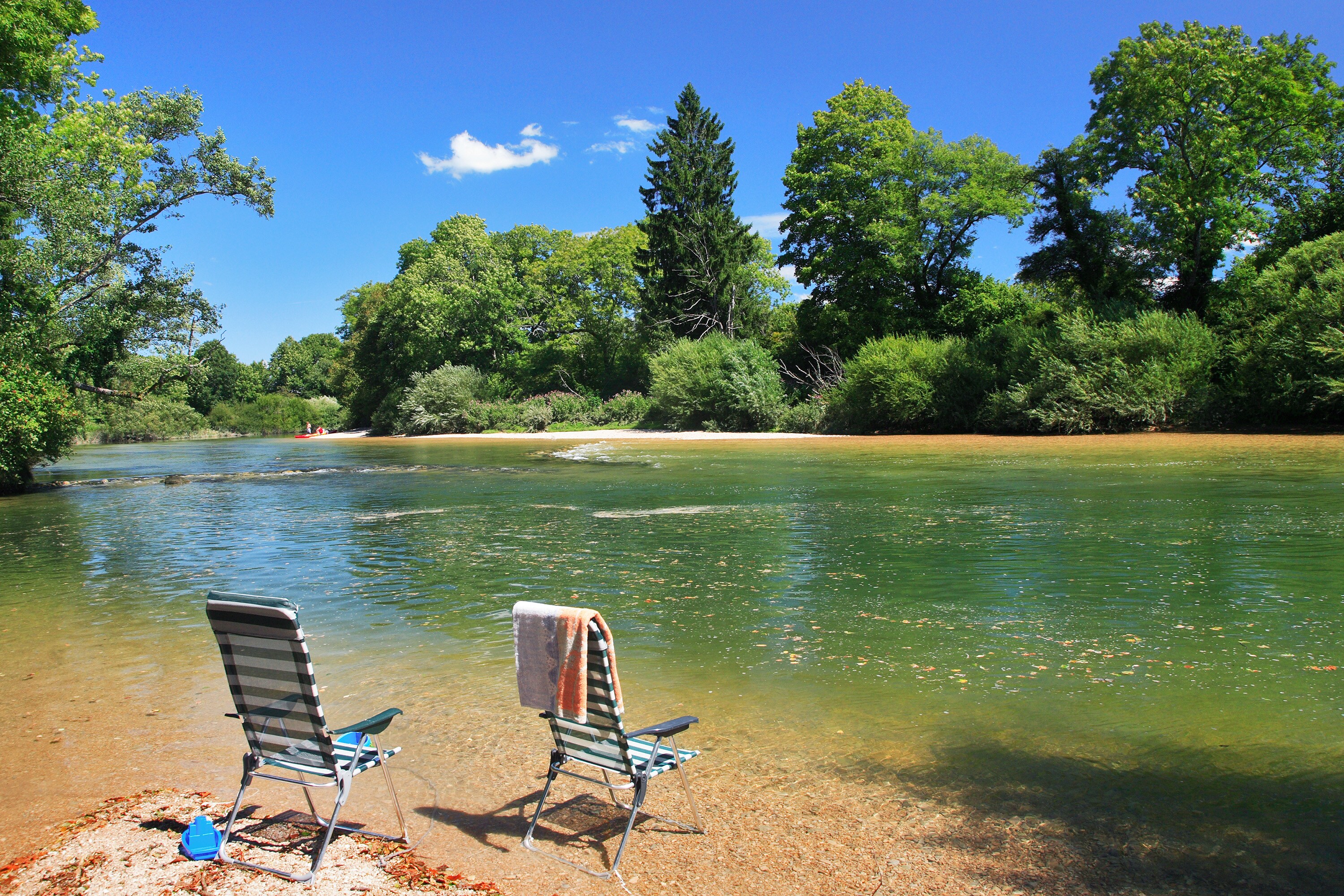 Op camping Domaine de l’Épinette bof je maar. Je bent hier namelijk op vakantie in de Franse Jura, op een camping pal aan een riviertje waar je heerlijk kunt kanoën (verhuur ter plaatse) en zwemmen.
