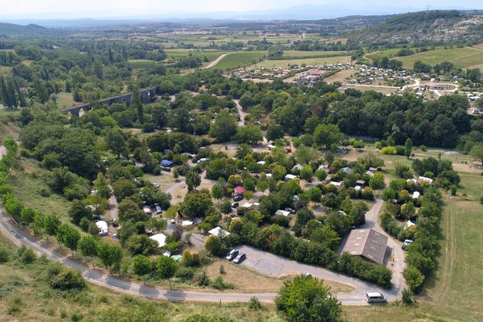 Het terrein heeft vooral toerplaatsen en bestaat voornamelijk uit een grasbodem. De vele boom- en plantensoorten zorgen voor een aangename schaduw. Centrale plek van camping Les Arches is het zwempark met een verwarmd buitenbad en poedelbadje, glijbaan en zonneterras. Bij de rivier La Claduègne, die midden door de camping stroomt, wordt in het hoogseizoen een groot natuurlijk zwembassin gecreëerd. Pootje baden, kikkervisjes vangen of dammetjes bouwen doe je hier. Vanaf het strandje kun je de kinderen in de gaten houden. Een voetbalveld en een speeltuin liggen hier vlakbij. En in het hoogseizoen is er een bar aanwezig. Op een paar minuten lopen vind je een waterval waar je ook lekker kunt zwemmen.