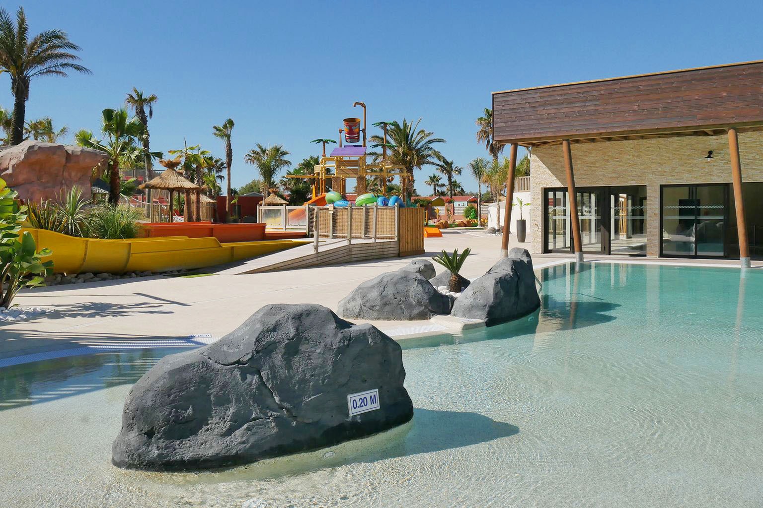 Camping Sandaya Aloha ligt direct aan de Middellandse Zee. Zonder een weg over te hoeven steken sta je zo op het ongerepte zandstrand. Hier vind je geen rijen strandstoelen, maar juist heel veel ruimte voor je handdoekje op het zand. Ook op de camping beleef je het strandgevoel. In de lagune onder de palmbomen waan je je op een Hawaïaans strand. Het zwemparadijs heeft een zwembad om baantjes te trekken, een kinderbad met klimtoestellen en speelobjecten, en eindeloos lange glijbanen. Het lijkt wel of je de halve camping over zweeft. Bij slecht weer vermaak je jezelf in het verwarmde binnenzwembad met stroming en bubbelbaden. Goed voor uren waterpret!