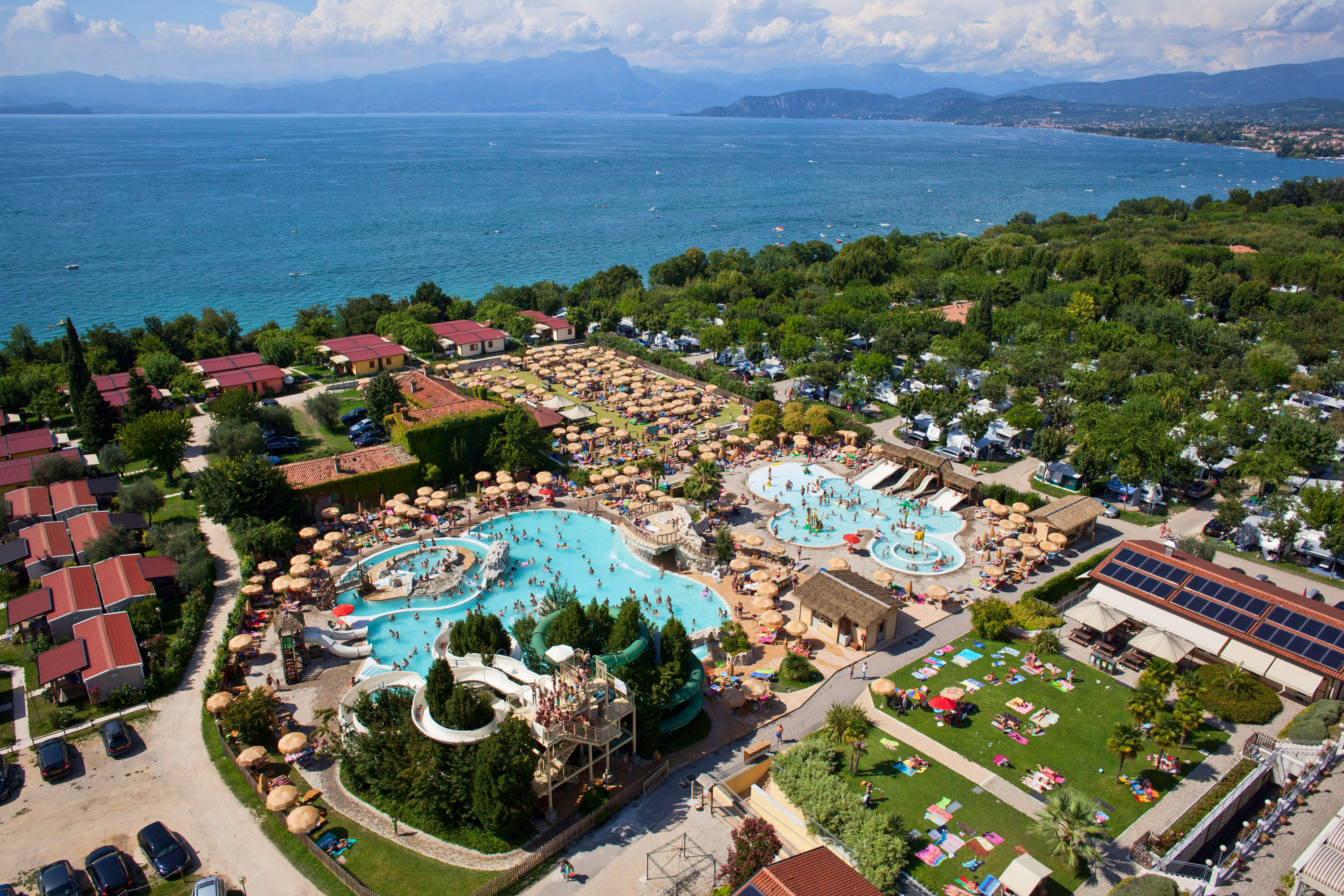 Het zwembadencomplex van deze camping aan het Gardameer is indrukwekkend. Maar liefst zeven zwembaden en acht glijbanen liggen voor je klaar. Het is de luxe van camping Piani di Clodia. En op deze camping, tussen de dorpjes Lazise en Peschiera del Garda, vind je nog veel meer luxe. Luxe kampeerplaatsen met wifi bijvoorbeeld! Uitstapjes maak je gewoon te voet. Wandel eens naar het gezellige Lazise. Of verras de kinderen met een bezoekje aan Caneva Aquapark!