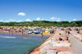 Je blijft vast niet de hele dag op de camping. Een kleine wandeling van een minuut of vijf à tien door het pijnbomenbos en je staat op het privéstrand van de camping aan de Adriatische Zee. Ook hier vind je ligbedden onder gele parasols. Je kunt natuurlijk ook je handdoekje in het zand leggen. Het strand loopt heel langzaam af en het rustige, warme zeewater is geschikt voor het hele gezin. Een drankje op zijn tijd haal je bij de strandbar.